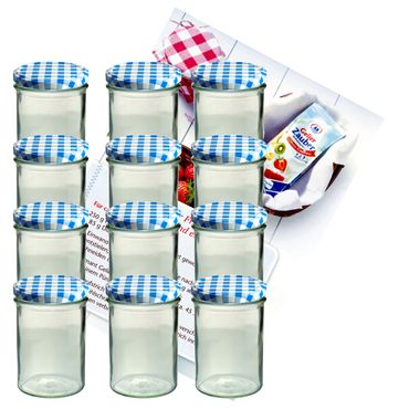 Optionen anzeigen12er Set Sturzglas 435 ml Marmeladenglas Einmachglas Einweckglas To 82 Obst Deckel incl. Diamant-Zucker Gelierzauber Rezeptheft